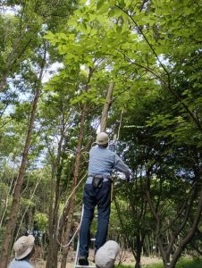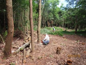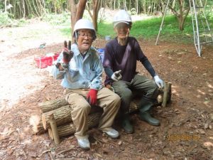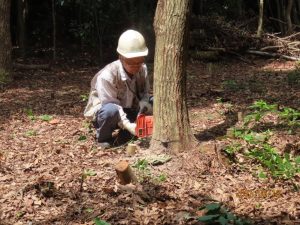 2日は、伐倒木の株から、脇芽の発生が無いように手当てしました。