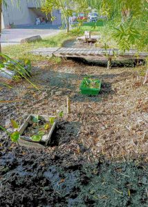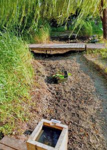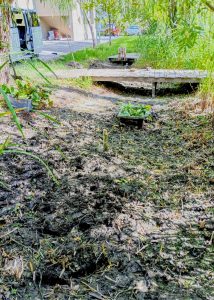 夏休みに給水設備(井戸水)に不都合が発生して、ビオトープの池が干し上がったので、この機会に、池を整理、清掃しました。